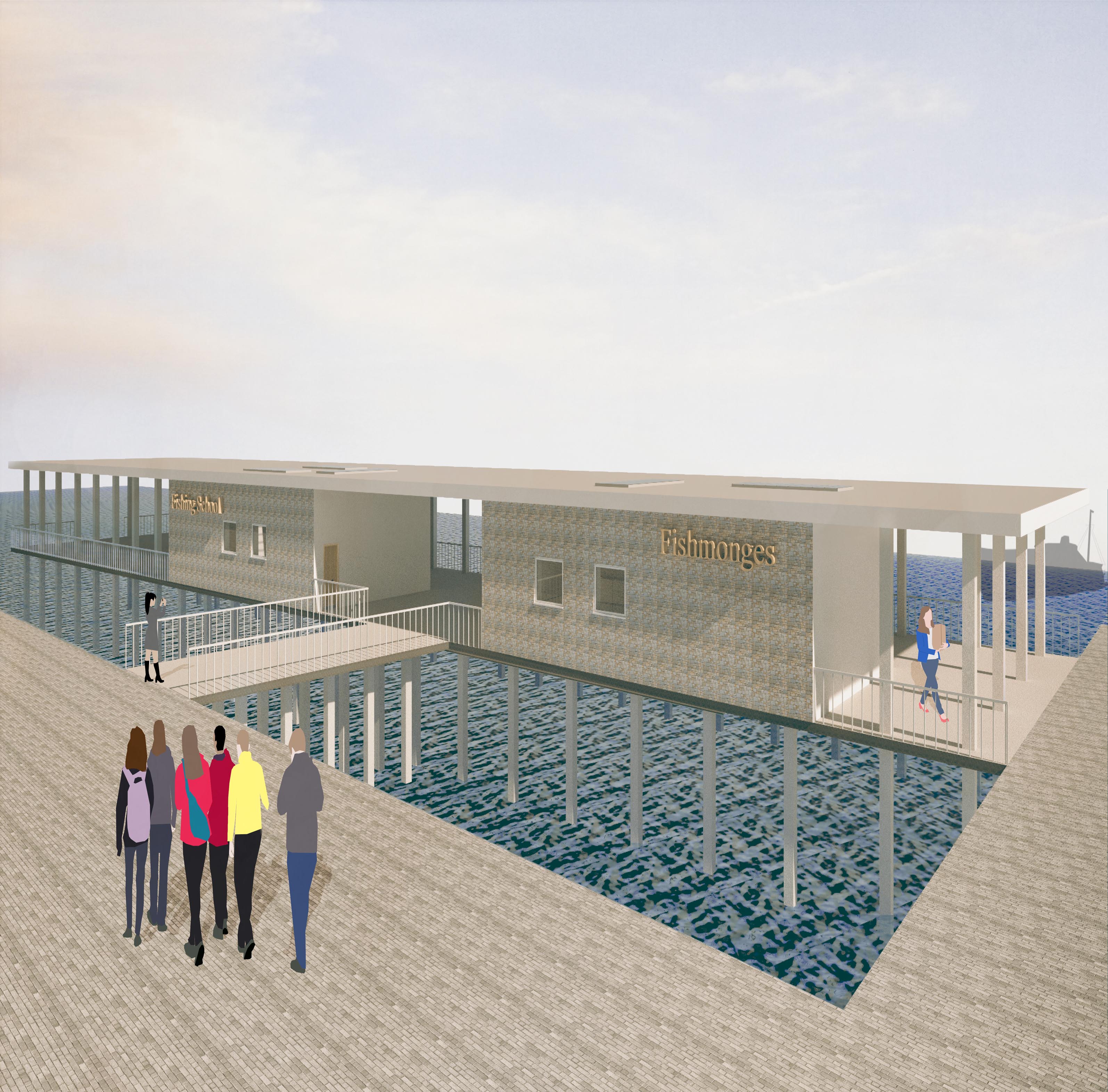 The visual render is completed through Autodesk Revit and Adobe Photoshop, showcasing and representing how the fishing cultural centre will be represented in reality. Each visual represents an alternative angle of House of Pisces.